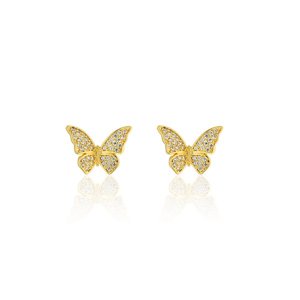 Este brinco em formato de borboleta é inteiramente cravejado com micro zircônias que refletem a luz com intensidade. Seu banho em ouro proporciona acabamento sofisticado, tornando-o perfeito tanto para o uso diário quanto para momentos especiais.