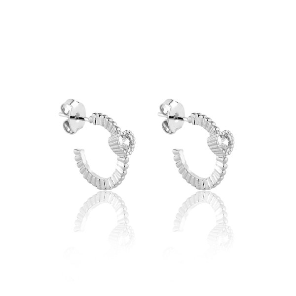 Este brinco meia argola traz um design moderno com textura canelada e um detalhe apaixonante: uma zircônia central em formato de coração, que confere delicadeza e personalidade à peça. O banho em prata proporciona brilho intenso e um acabamento refinado.