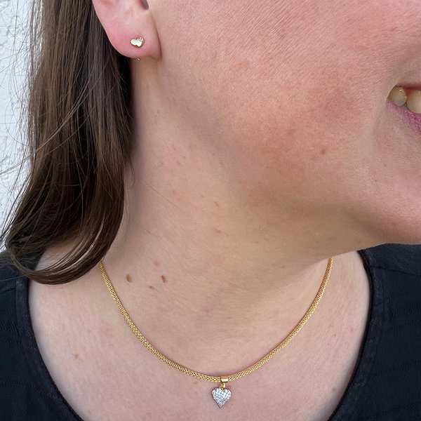 Conjunto Brinco Segundo Furo Coração E Choker Coração E Zircônias Banhados A Ouro 18K