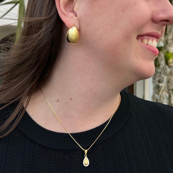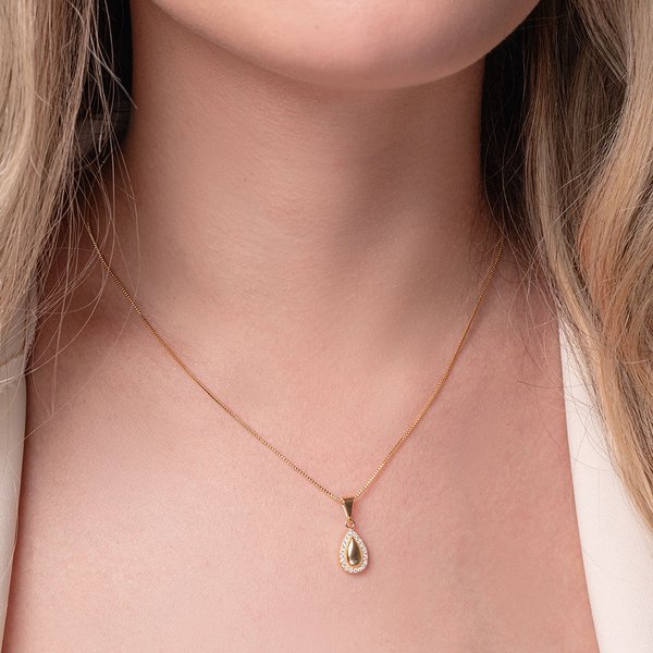 Conjunto Colar Gota Clássica Cravejada E Brinco Gota Liso