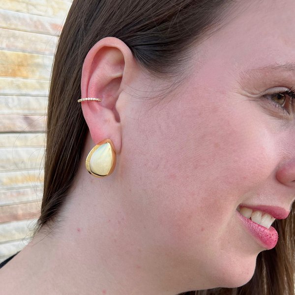 Conjunto Piercing Fake Cravejado Com Zircônias E Brinco Gota Liso Banhados A Ouro 18K