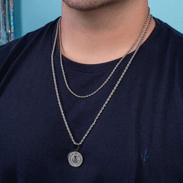 Demonstre sua fé com estilo usando a Corrente Masculina Cordão Baiano com Pingente São Bento em Aço Inox. Este colar combina a durabilidade do aço inoxidável com um design robusto e uma corrente trançada, resultando em uma peça moderna e resistente. O pingente de São Bento adiciona um toque religioso, simbolizando proteção e fé.